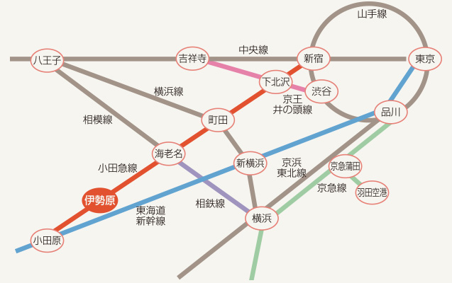 東京方面より/東名高速「厚木IC」より国道246号経由にて約20分